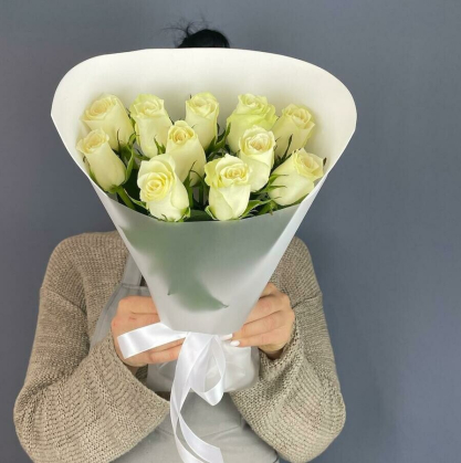 Купить букет из 11 белых кенийских роз в Монако