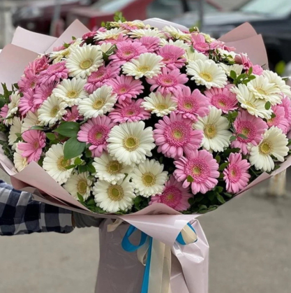 Букет из 101 белой и розовой герберой | Купить в Монако